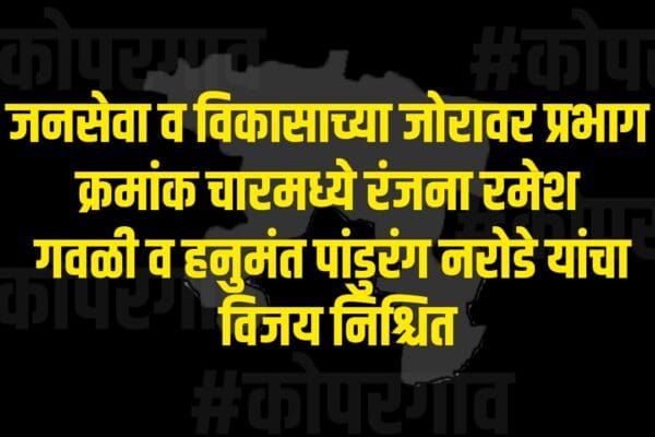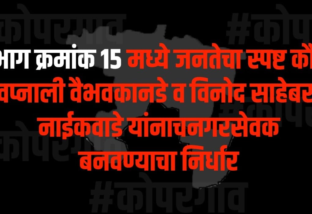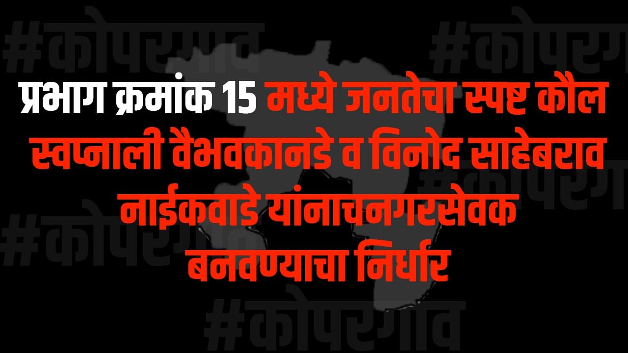 कोपरगाव नगरपालिकेच्या होऊ घातलेल्या निवडणुकीच्या पार्श्वभूमीवर प्रभाग क्रमांक 15 मध्ये मतदारांचा कल स्पष्टपणे दिसून येत आहे. प्रभागातील नागरिकांनी स्वप्नाली वैभव कानडे व विनोद साहेबराव नाईकवाडे यांनाच नगरसेवक म्हणून निवडून देण्याचा ठाम मानस व्यक्त केला आहे. प्रभागातील मूलभूत प्रश्न, नागरी सुविधा, पाणीपुरवठा, रस्ते, स्वच्छता व दैनंदिन समस्यांबाबत सातत्याने जनतेशी संपर्क ठेवत दोन्ही उमेदवारांनी विश्वासार्ह भूमिका निभावली…